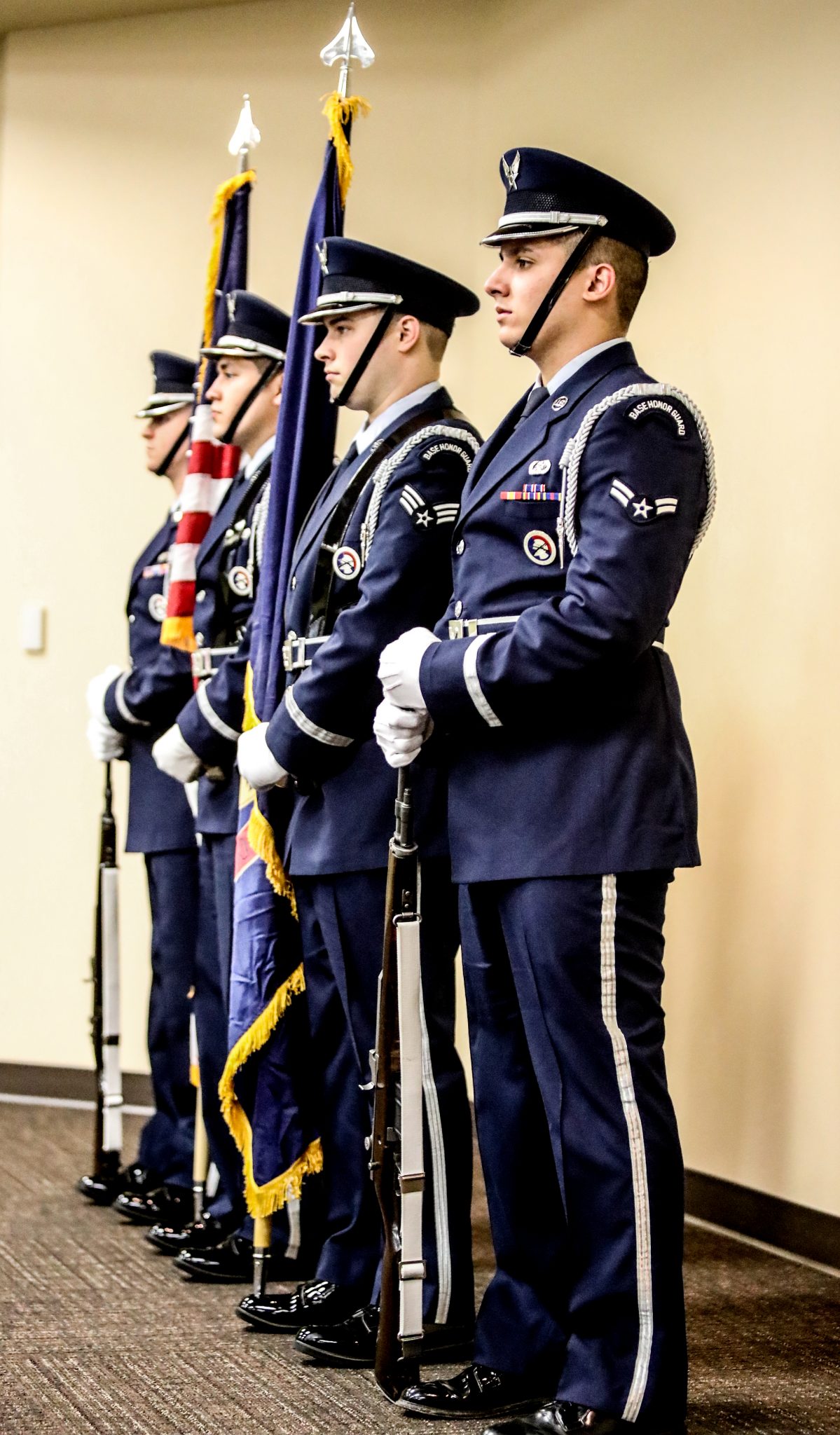 Members of the Fairchild Air force Honor Guard perform opening ceremonies for the Veteran’s Luncheon held on Thursday in the Student Union Building.