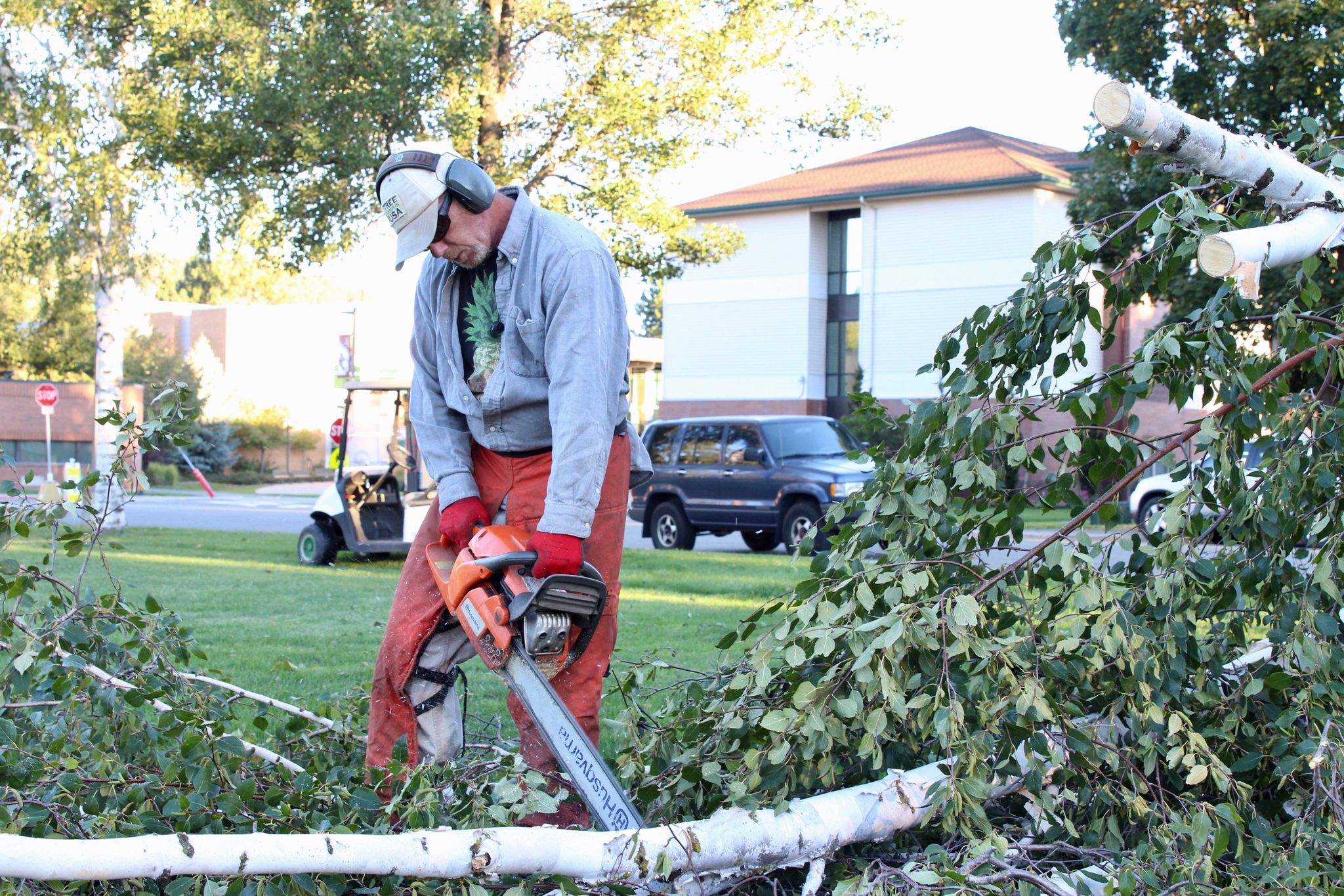 Maintenance chainsawed the fallen tree on top of the Children’s Center on Tuesday morning to get the building back to safe conditions for reopening Wednesday.
